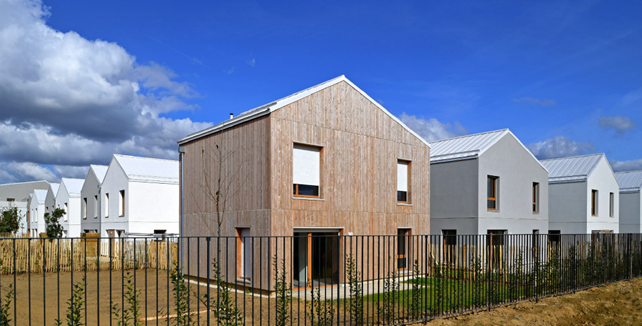 Ce projet s'inscrit dans la stratégie bas carbone du groupe Eiffage par sa forte dimension environnementale avec une place prégnante accordée au bois dans le système constructif (100 % bois pour les maisons individuelles et 50 % pour les logements collectifs).