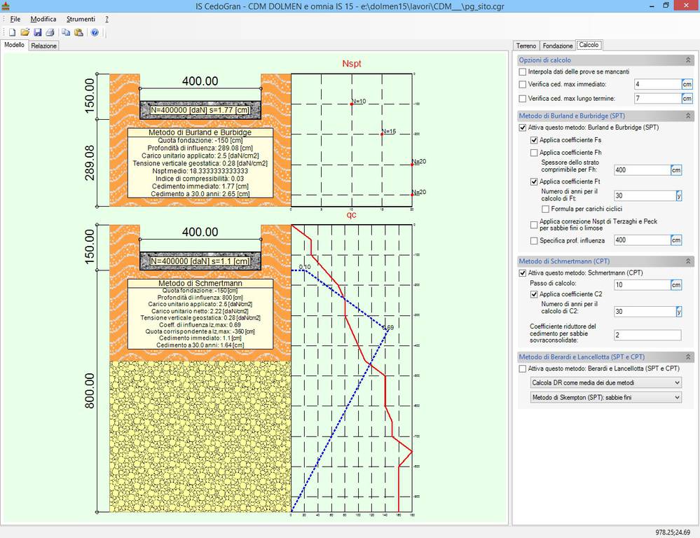 IS Progeo est une compilation de modules géotechniques pour la conception de structures en contact avec le sol. IS IperFond calcule la capacité portante des fondations superficielles dans le cas des sols multicouches et avec éventuellement la nappe phréatique. IS GeoRel génère la relation géotechnique en expliquant les valeurs de l'angle de frottement, La résistance au cisaillement non drainée (cu), la vitesse de cisaillement et la densité relative. IS PortaPalo calcule la capacité portante d'un pieu. IS NaviGeo permet de rassembler toutes les notes de calcul des éléments de fondation. IS PaliElas et IS PaliSol calculent les sollicitations en tête des pieux en 2D et 3D. IS SpintaMuro calcule les actions sur un mur de soutènement. IS CedoEdo et IS CedoGran évaluent l'affaissement des fondations superficielles. De plus les bases de données des couches et des tests sont disponibles dans : IS DBStrati et IS DBProve.