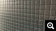 L'aspect PÂTE DE VERRE est une création sur-mesure qui répond aux besoins de rénovation de bâtiments emblématiques des années 70, revêtus de pâte de verre.