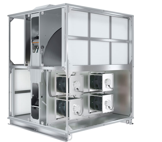Les centrales de traitement d'air compacte vQ Stream consomment peu d'énergie et s'installent facilement dans des locaux techniques ou à l'extérieur d'un bâtiment.