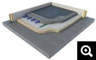 - Utilisation sur mousse PUR projetée avec un plancher chauffant hydraulique.